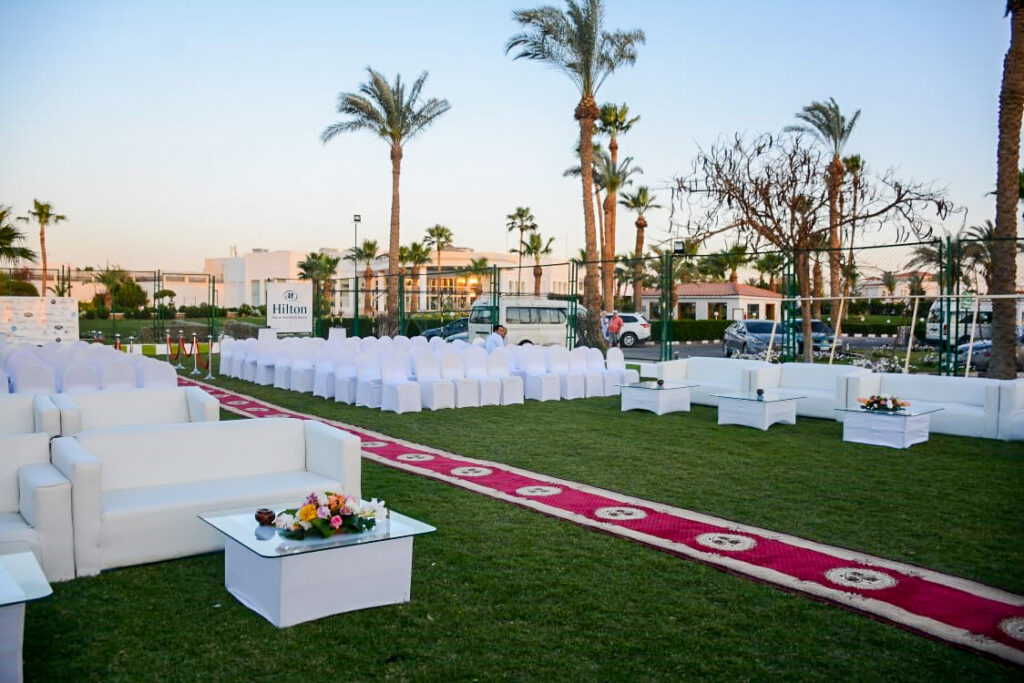 Sharm Event Planner can provide open spaces and halls inside hotels in Sharm El-Sheikh to hold conferences and meetings, small and large. We provide you with all kinds of furniture and mattresses, including chairs, tables, and tents, to suit the needs of the event.